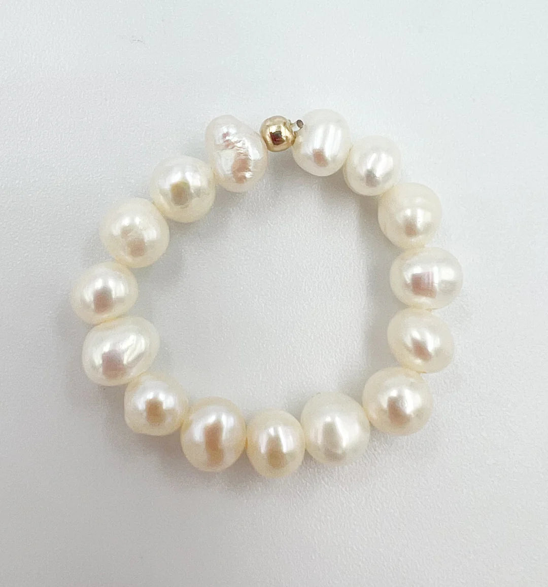 Freshwater pearls strung on stretchy cord. Just roll on and off!