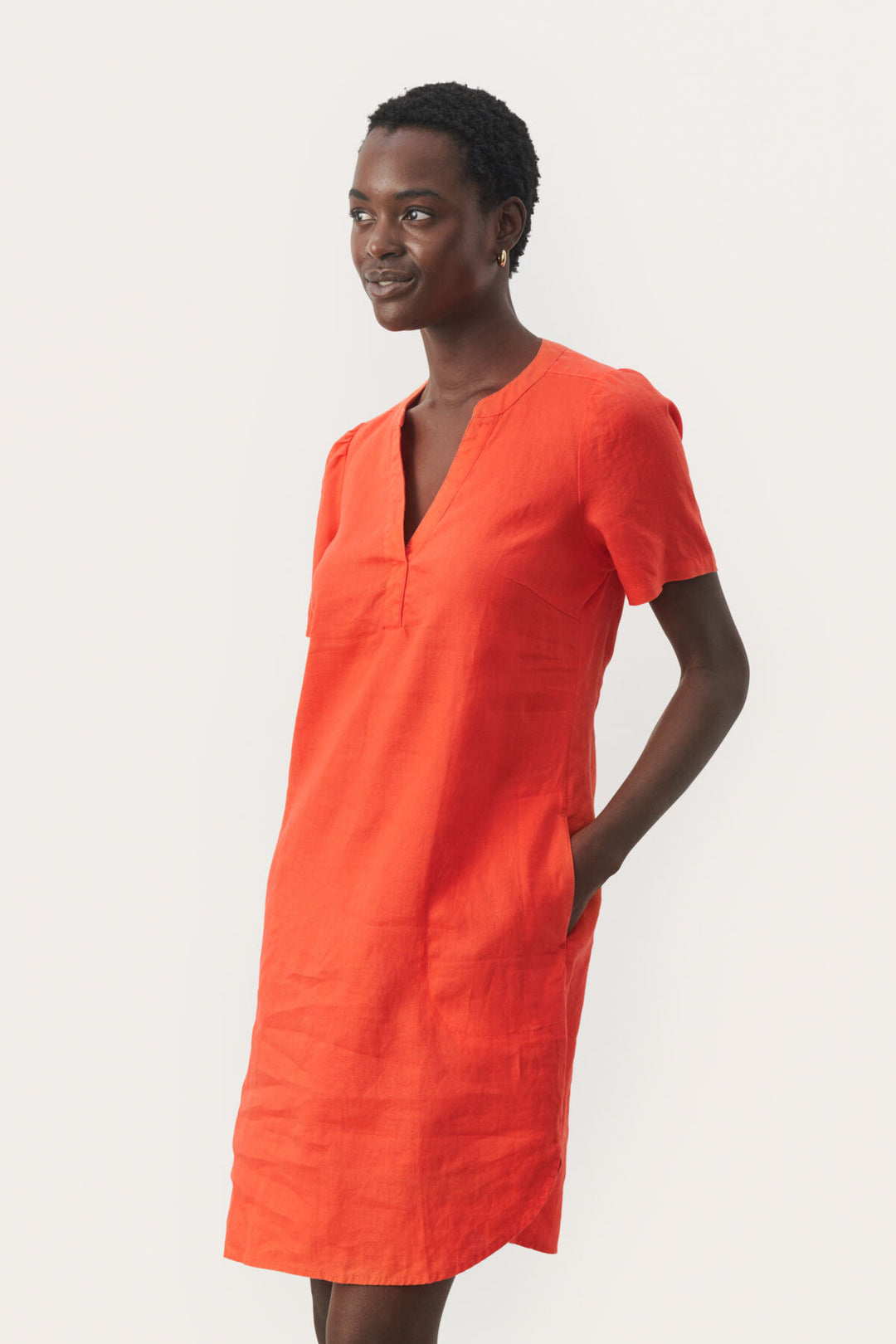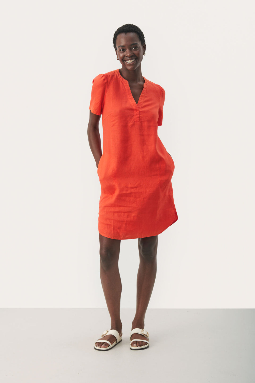 AMINASE LINEN DRESS (MANDARIN RED) - PART TWO