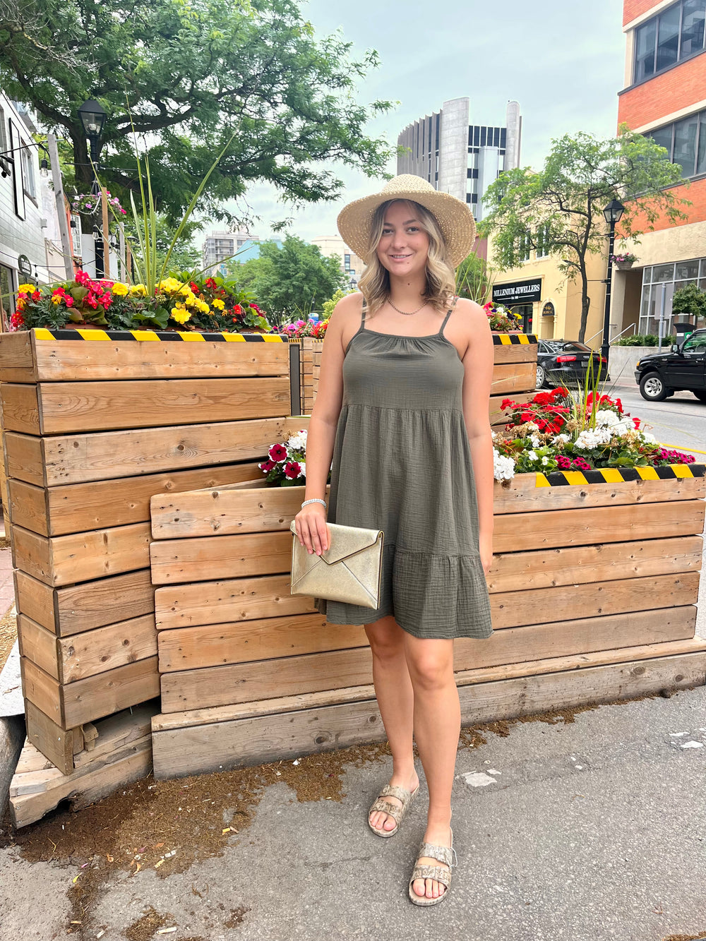 This adorable dress has adjustable spaghetti straps, a 3-tier design, and is made out of our lightweight, textured gauze fabric. Add this easy-breezy dress to your closet!