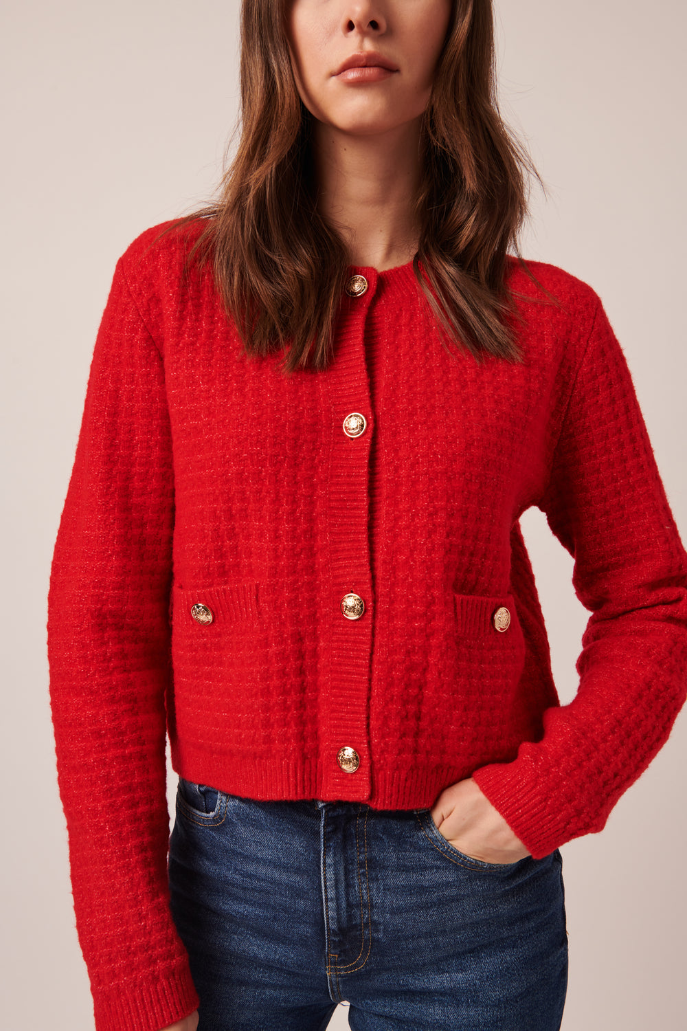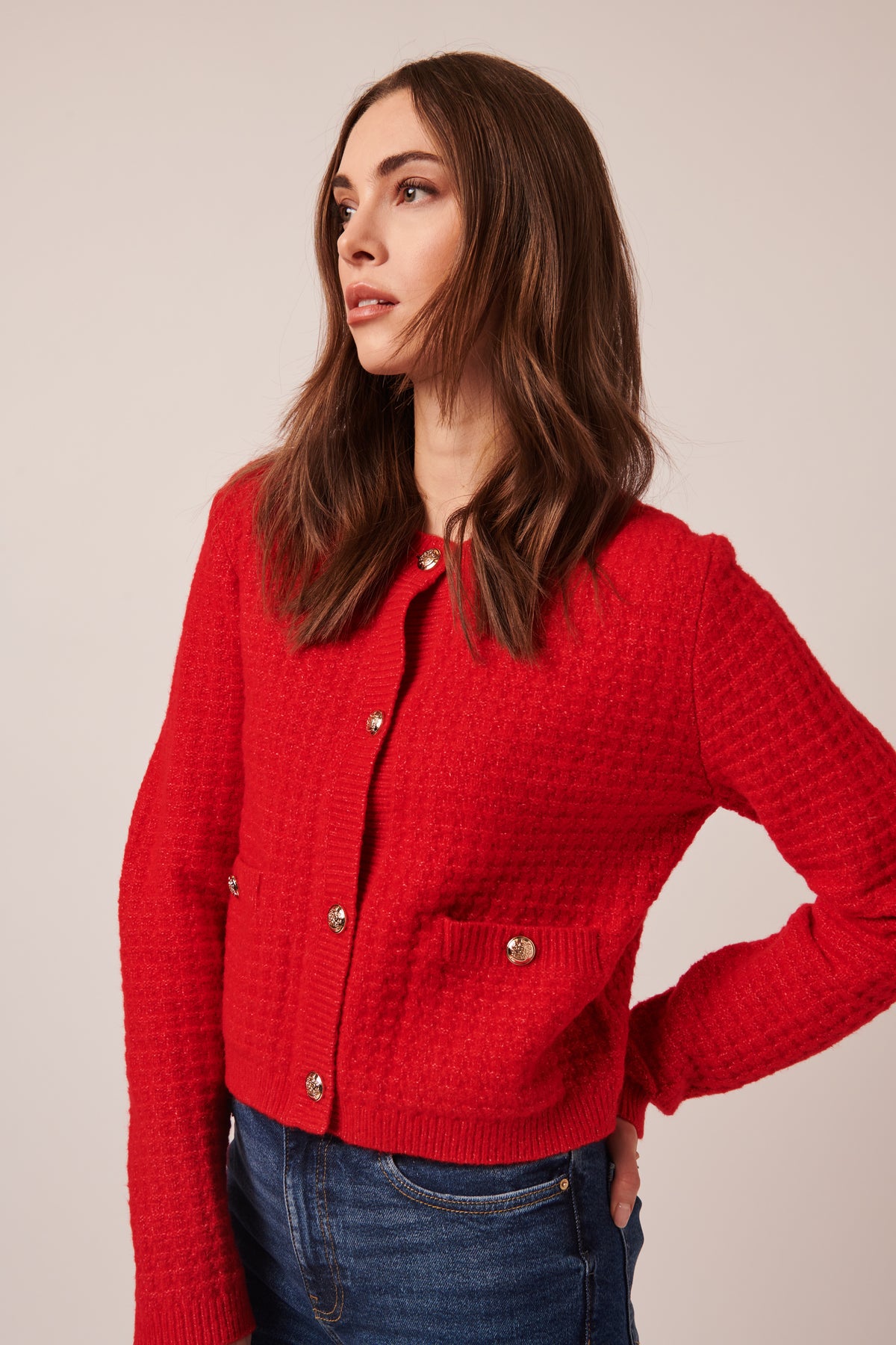 Introducing the Catalina Button-Up Cardigan by Line. This fitted cardigan features a button-up design for a classic look. Upgrade your wardrobe with this must-have piece.