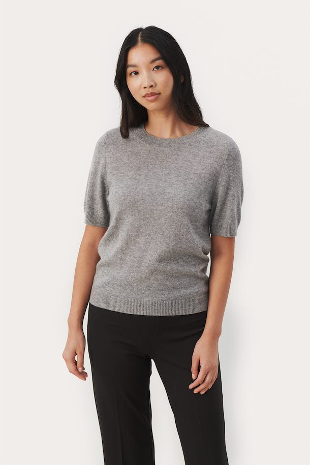 EVERLOTTA SHORT SLEEVE CASHMERE SWEATER (GREY MELANGE) - PART TWO