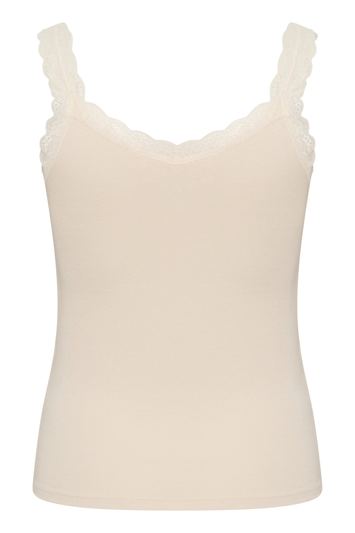 Slim fitting tank with lace detailing and a slight rib fabric. Perfect for layering or wearing on its own.
