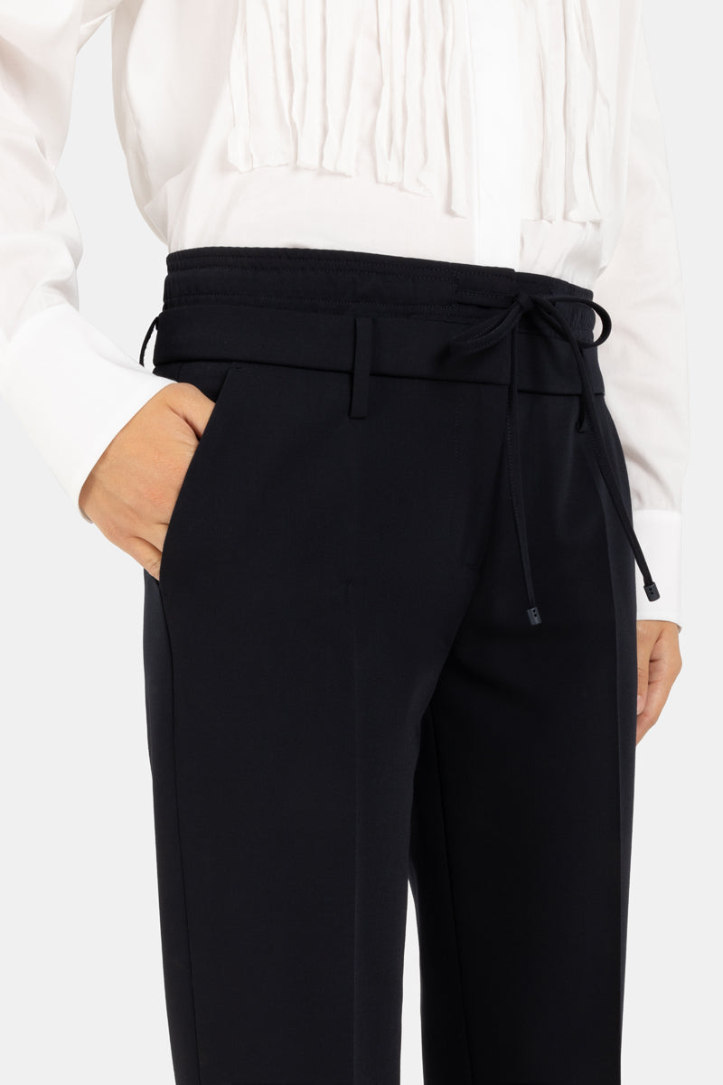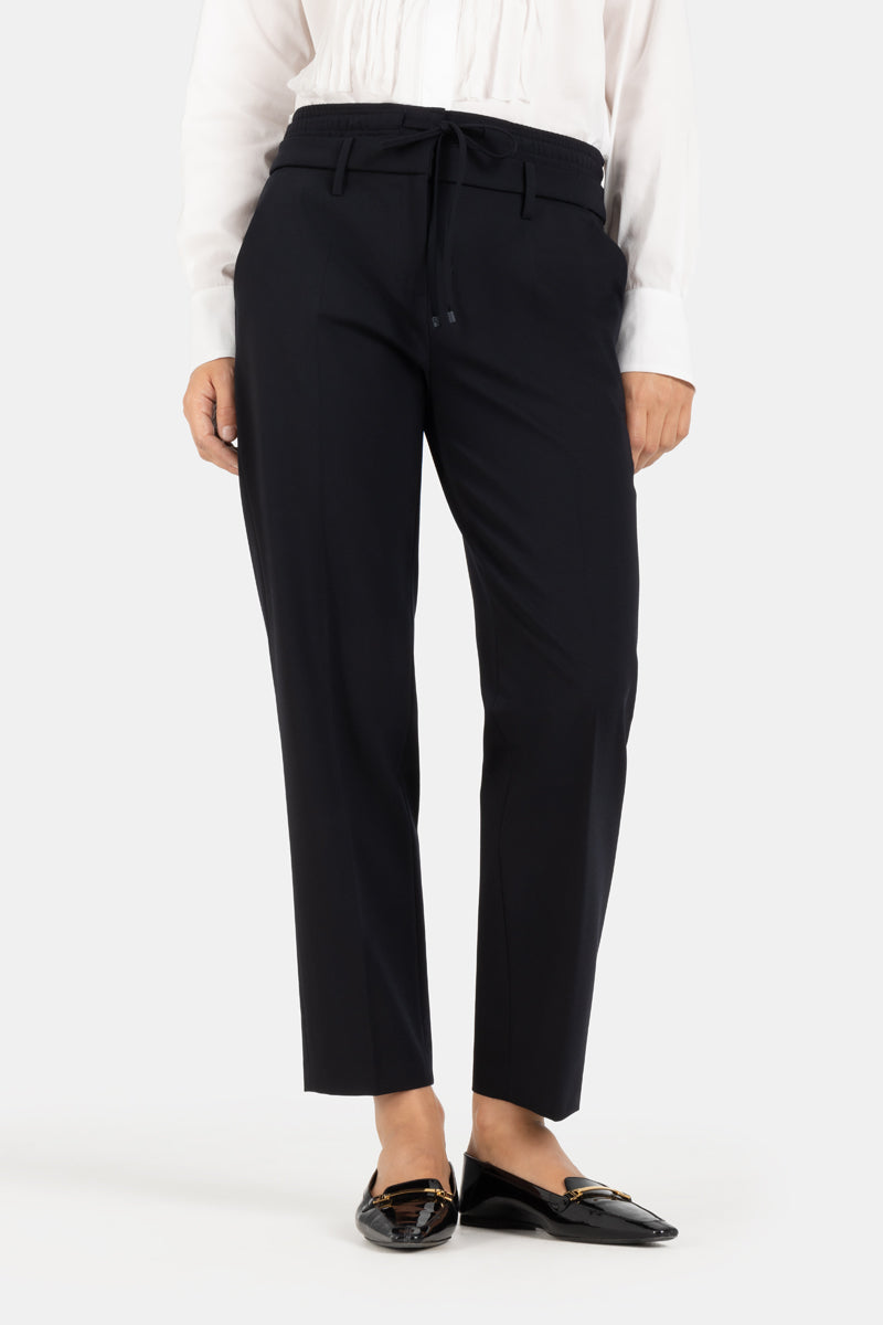 The Karen is a cool wool tapered ankle pant with double athletic pant waistband detail.