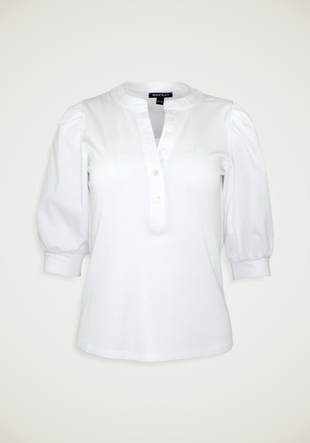 PUFF SLEEVE MIXED MEDIA TOP (WHITE) - REPEAT
