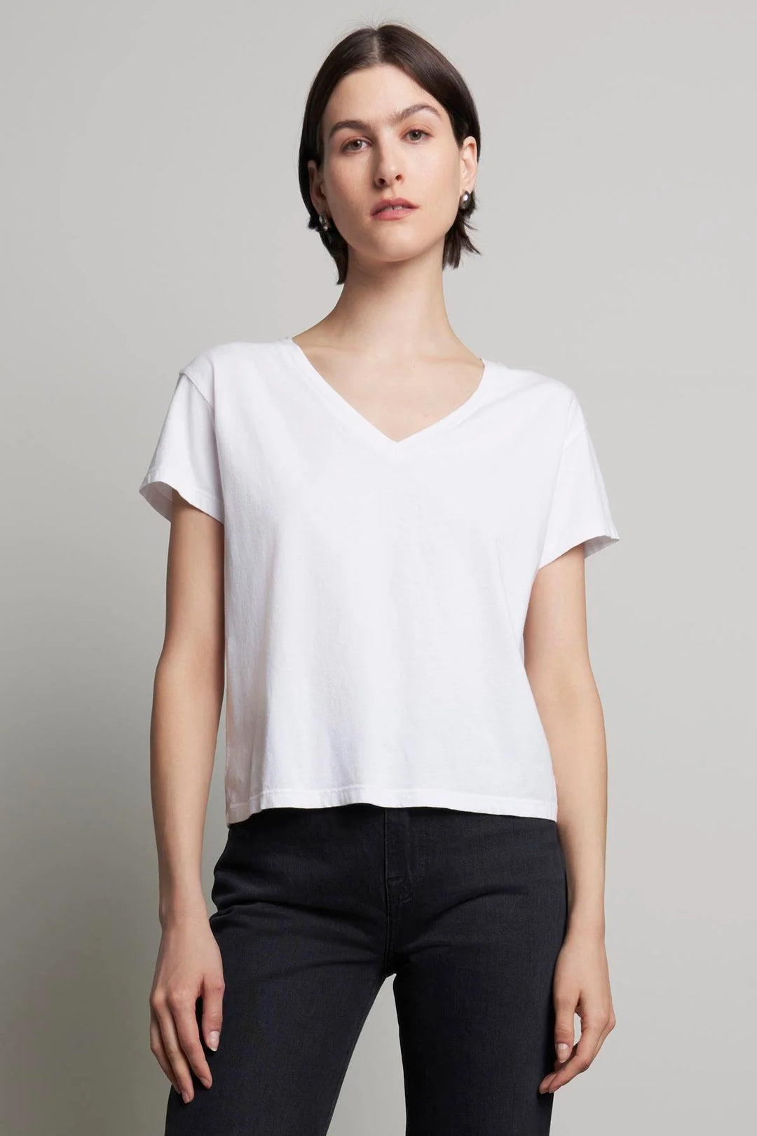 VENICE ORGANIC COTTON V-NECK TEE (WHITE) - VELVET
